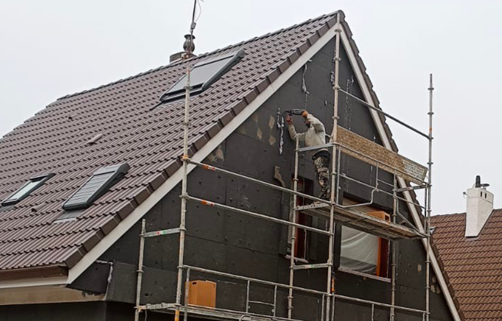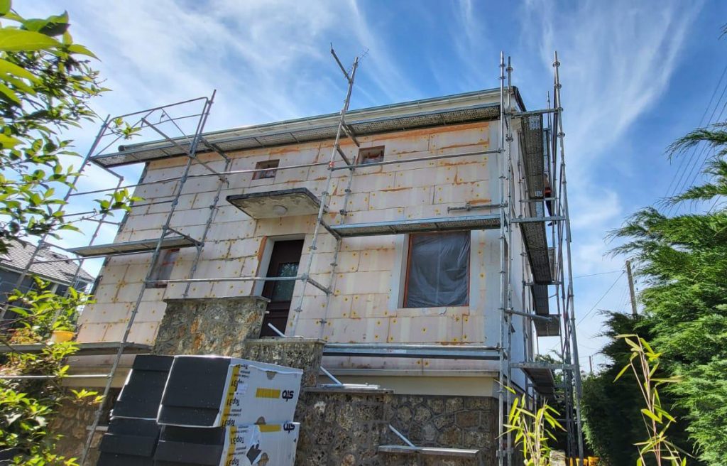 La rénovation par l’extérieur désigne tous les travaux effectués sur l’enveloppe extérieure d’une maison, comme • Le ravalement de façade (nettoyage, réparation, peinture ou habillage, traitement hydrofuge de facade). • La rénovation de la toiture (remplacement des tuiles, étanchéité). • Le changement des fenêtres et portes.